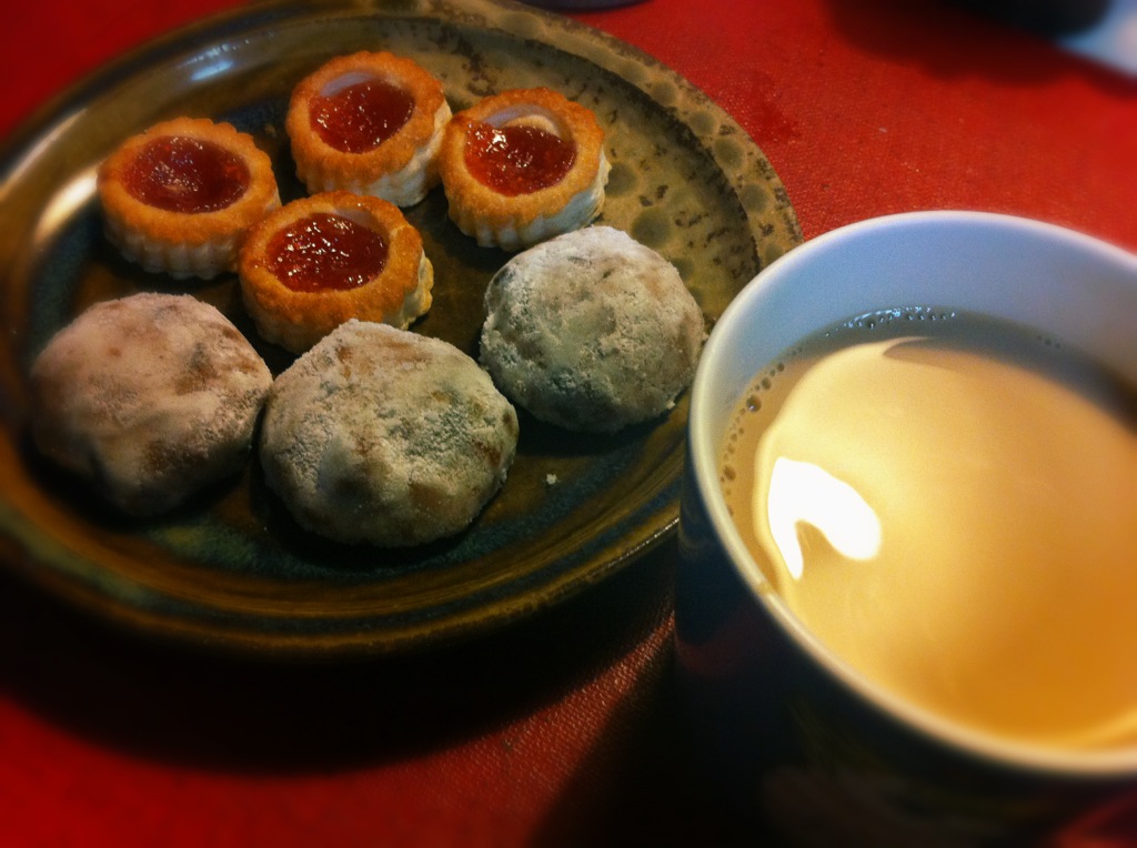 ログ・ホライズン読みながら、カフェオレとお菓子で一服。これ飲み終わったらワインにきりかえるぞ。