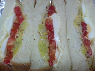 今朝は弁当作る余裕があったので、サンドイッチ。