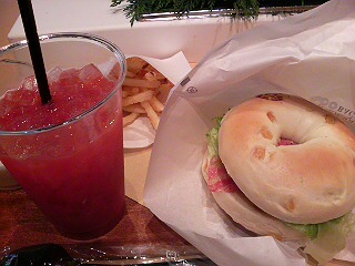 カリカリベーコンとかぼちゃサラダのベーグルサンドイッチ