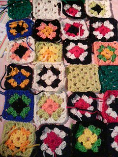 掃除してたら毛糸が出てきたので、膝掛けを作ろうと、ちまちまモチーフ編み。結構数ができた。