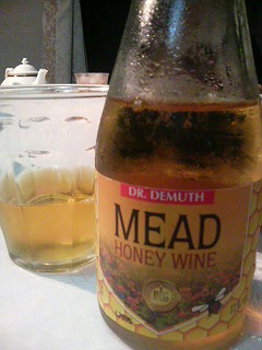 飲み物は白ワイン。ツェラー・シュワルツ・カッツQbA